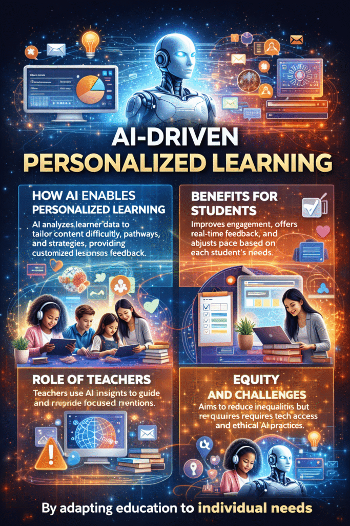 AI-driven personalized learning is transforming education by tailoring instruction to individual learners’ needs, abilities, and learning styles. Unlike traditional one-size-fits-all approaches, artificial intelligence enables adaptive learning experiences that respond to students’ performance, pace, and preferences in real time. This shift is reshaping teaching, learning, and educational outcomes across all levels.